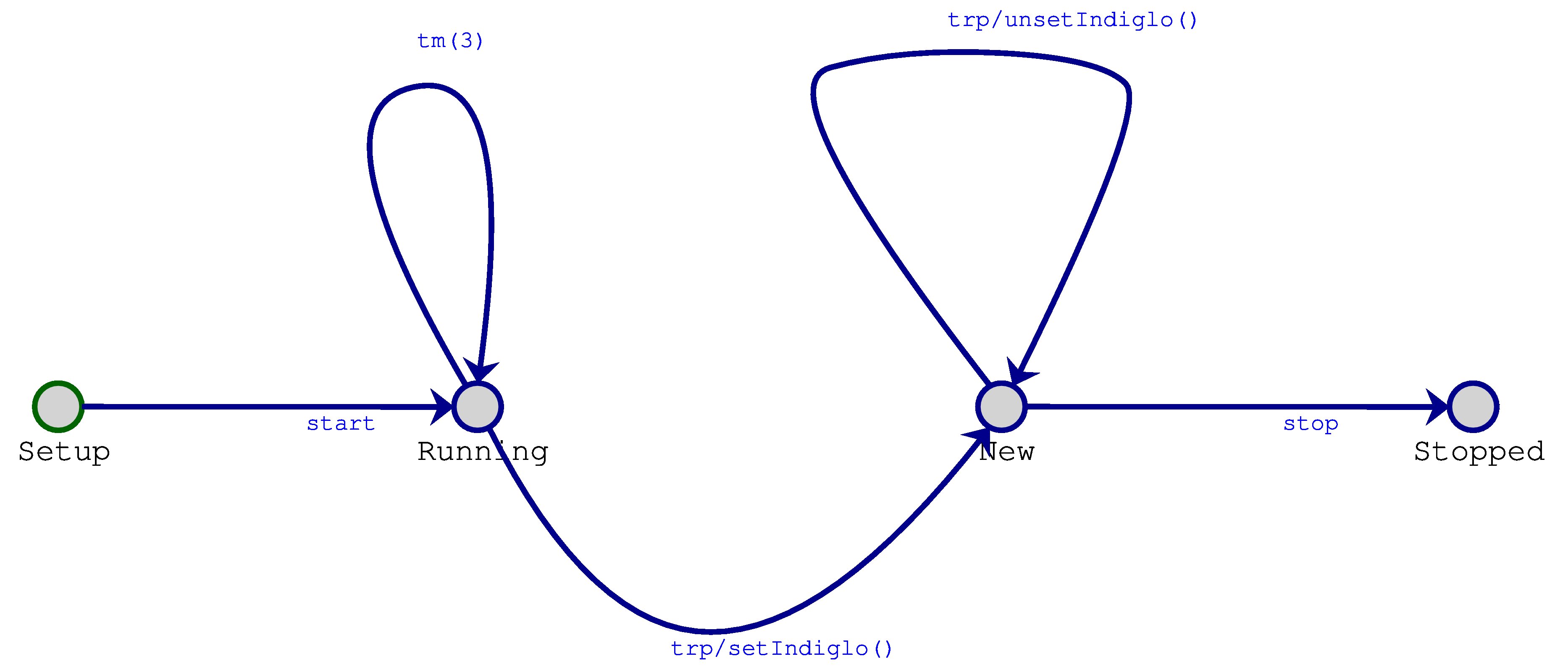 To help clarify the requirements, the following contain a working solution (execOnly_32bit.zip and execOnly_64bit.zip). The Statechart model is only present in compiled form however. Note that these may work on your machine. Though Python source code is highly portable, the bytecode is not. Interface provided by the controllerbatteryHalf() Sets the battery power to half, making the display show only "8"s. batteryFull() Sets the battery power to full, making the display show as usual. getTime() Returns the current clock time. getAlarm() Returns the alarm time set. checkTime() Checks if the alarm time set is equal to the current clock time. If so, it will broadcast the "alarmStart" event to the statechart and return true. Otherwise, it returns false. Note that checkTime() does not care/check whether the alarm has been set "on". refreshTimeDisplay() Redraw the time with the current internal time value. The display does not need to be cleaned before calling this function. For instance, if the alarm is currently displayed, it will be deleted before drawing the time. refreshChronoDisplay See refreshTimeDisplay() refreshDateDisplay() See refreshTimeDisplay() refreshAlarmDisplay() See refreshTimeDisplay() resetChrono() Resets the internal chrono to 00:00:00. startSelection() Selects the leftmost digit group currently displayed on the screen. increaseSelection() Increases the currently selected digit group's value by one. selectNext() Select the next digit group, looping back to the leftmost digit group when the rightmost digit group is currently selected. If the time is currently displayed on the screen, select also the date digits. If the alarm is displayed on the screen, don't select the date digits. (to simplify the statechart). stopSelection() increaseTimeByOne() Increase the time by one second. Note how minutes, hours, days, month and year will be modified appropriately, if needed (for example, when increaseTimeByOne() is called at time 11:59:59, the new time will be 12:00:00). increaseChronoByOne() Increase the chrono by 1/100 second. setIndiglo() Turn on the display background light unsetIndiglo() Turn off the display background light setAlarm() Flag the alarm to be on or off. Events sent to the Statechart (as strings): (due to button press) - topRightPressed - topRightReleased - topLeftPressed - topLeftReleased - bottomRightPressed - bottomRightReleased - bottomLeftPressed - bottomLeftReleased (generated by checkTime() if current time == alarm time) - alarmStart Starting pointThe archive wristwatch.zip contains a very simple example to get you started. This starting point Statechart is reproduced here ![]()