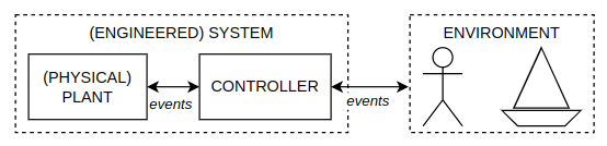 The controller is to be implemented as a Statechart, and therefore can only interact with the plant and the environment through discrete input and output events.
