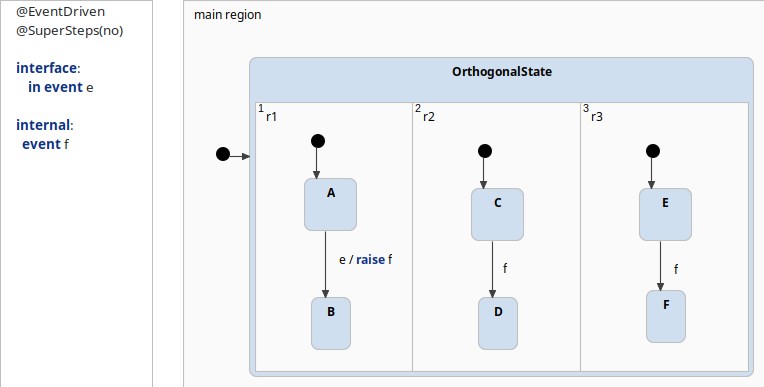 Please remember that these precise semantics are specific to itemis CREATE. Other Statechart tools (e.g., STATEMATE, Rhapsody, StateFlow) have different semantics.