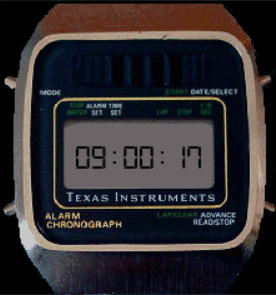 The watch can display 6 numbers, in the form HH:MM:SS when displaying the current time, or the time of the alarm, or in the form MM:SS:HS (HS means hectoseconds) when displaying the chronometer.
